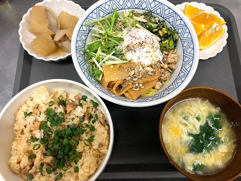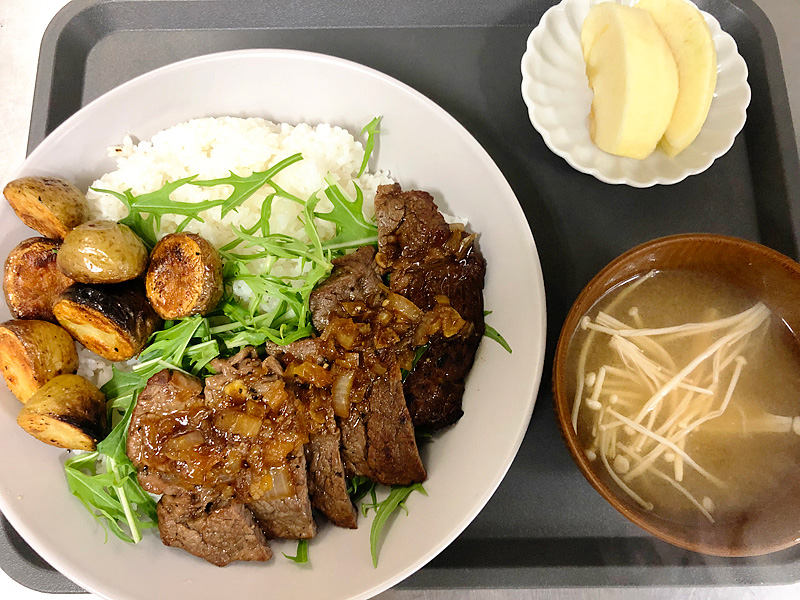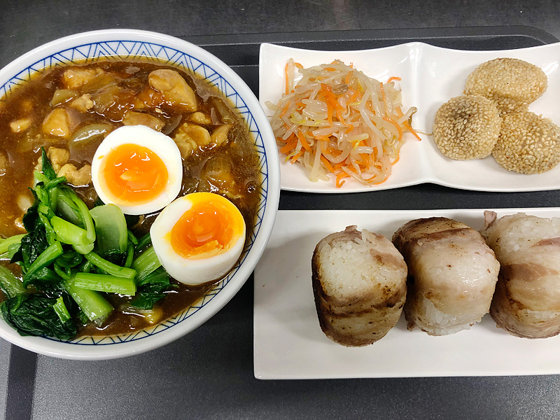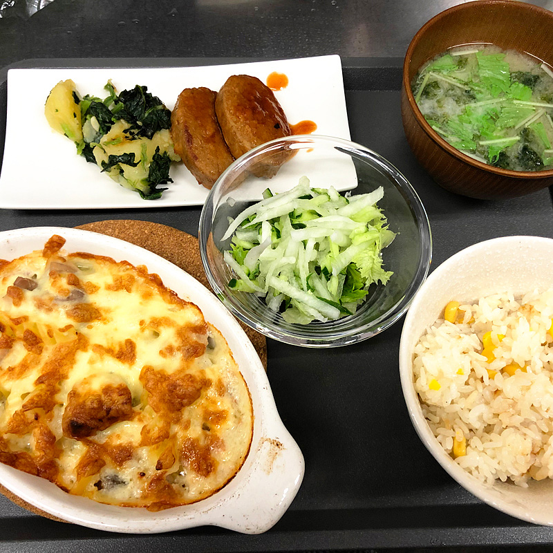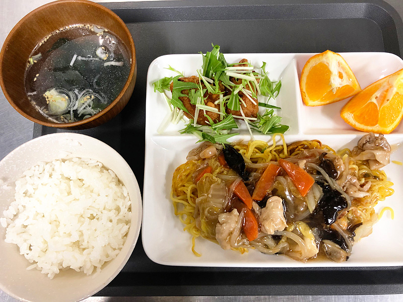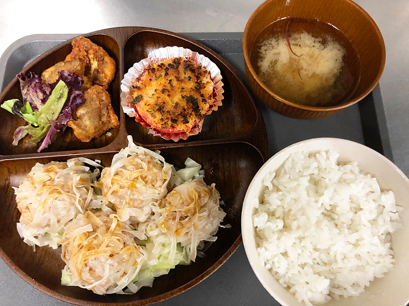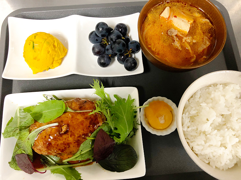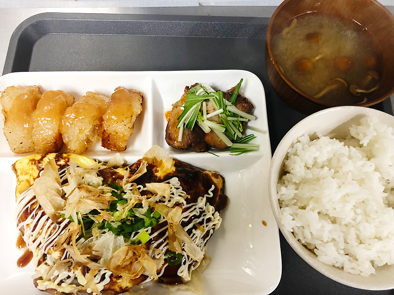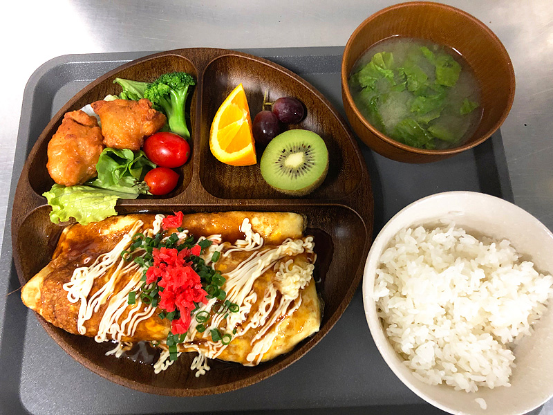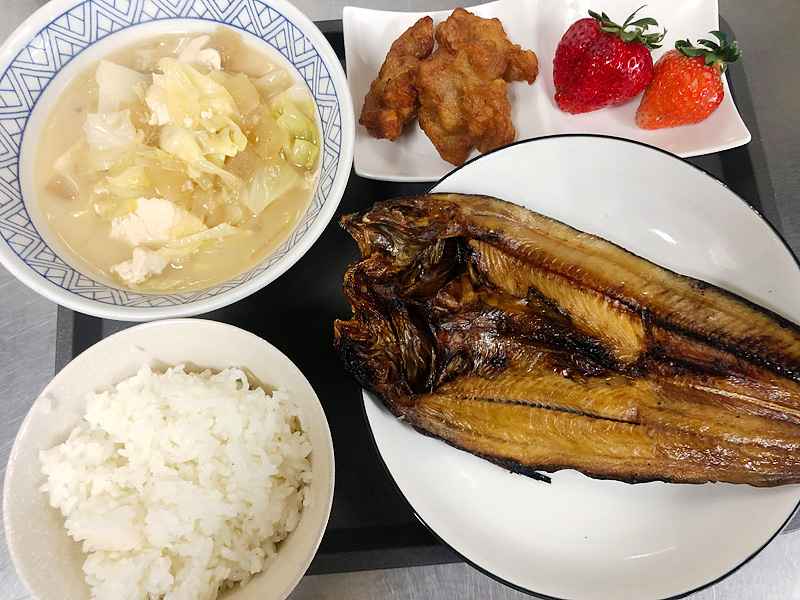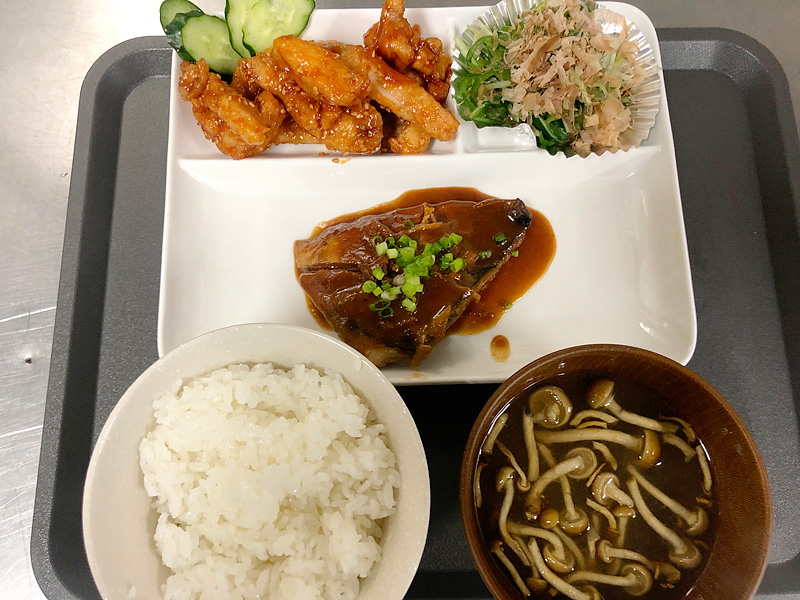 函館・下宿・キタヤ・お食事 毎日飽きの来ない豊富な献立。 入居者の健康管理を考え、さまざまの食材を使った煮物や炒め物、焼物、揚物など、毎日飽きの来ないバランス良い献立を心がけております。また厨房にはサラマンダーやフライヤーなど最新の調理器具を揃え、油の酸化防止や衛生管理も徹底して行っておりますので、安心してお召し上がりいただけます。